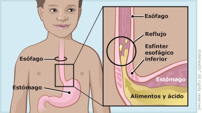 Un anillo muscular (el esfínter esofágico inferior) separa el esófago del estómago. Los síntomas del reflujo ocurren cuando este anillo se relaja en el momento incorrecto o no se cierra bien. Esto permite que el líquido ácido procedente del estómago suba hacia arriba por el esófago y llegue a la parte posterior de la garganta, y a veces hasta la boca o la nariz.