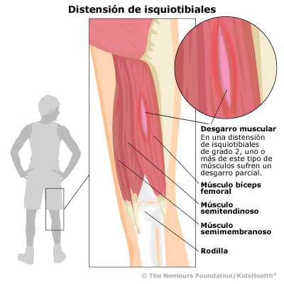 Una distensión de isquiotibiales, también conocida como tirón de isquiotibiales, ocurre cuando uno o más de esos músculos se estiran o se distienden demasiado y se empiezan a desgarrar.