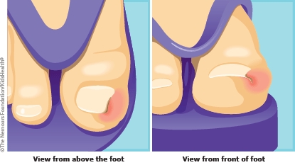 If you notice any of the signs of infection, like discharge, warmth, or a bad smell, contact your doctor, who may ask you to see a podiatrist (foot specialist). Sometimes the podiatrist needs to remove the corner of the nail that is stuck and drain the pus or liquid that has built up in the skin. Not to worry, though — first the doctor will use medicine to numb the toe and you will feel much better when it's done.